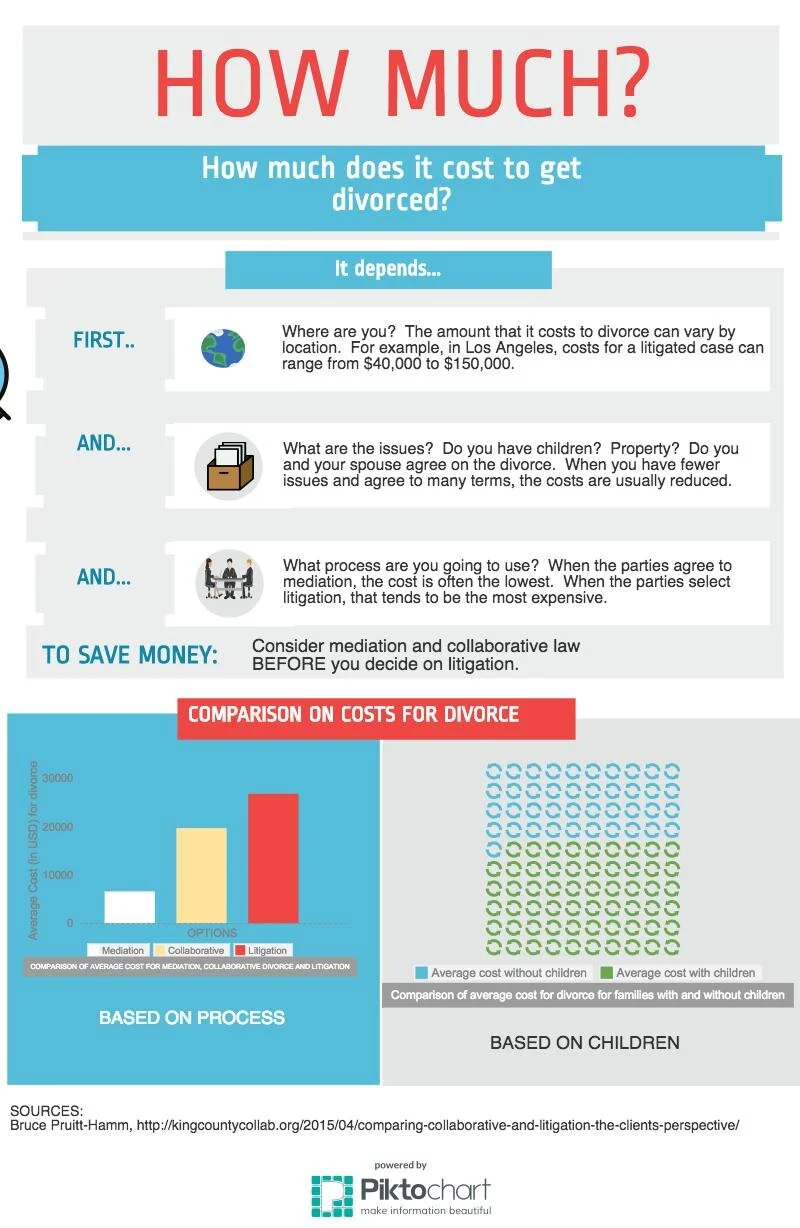 How much does it cost to get divorced? Where you live, whether or not you have children or property and whether or not you chose mediation or litigation will have a big impact.